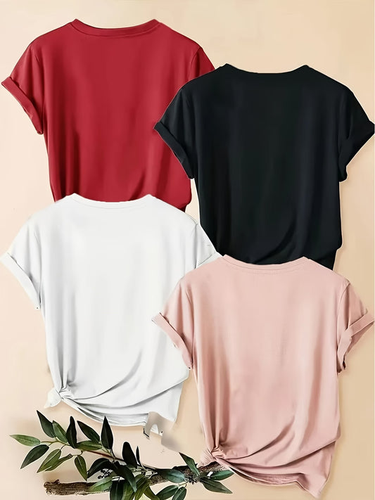 4PCS Women’s Vintage Valentine Print T-Shirts – Short Sleeve Round Neck Casual Tees