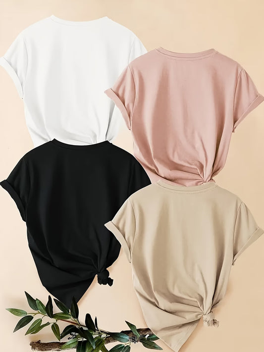 4PCS Women’s Faith Cross Graphic T-Shirt Set – Short Sleeve Crew Neck Casual Loose Fit Tops, Soft Breathable Fabric, S-XXL