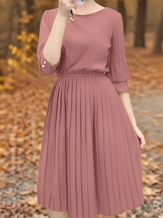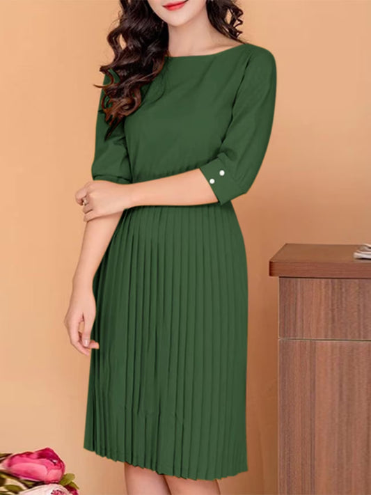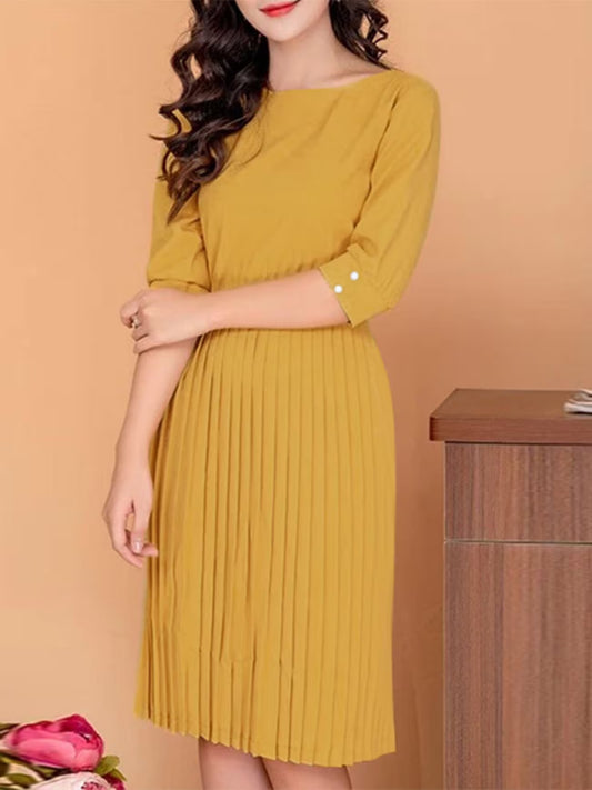 Elegant Korean Style Pleated A-Line Knee Length Dress